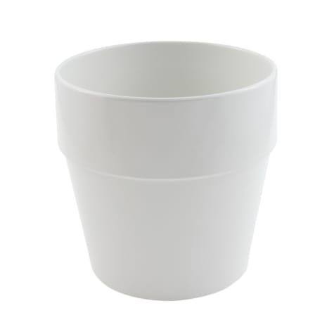 This 2 Qt. round salad dressing pot is made of cast aluminum with a white sandstone finish and has a simple, undecorated design.