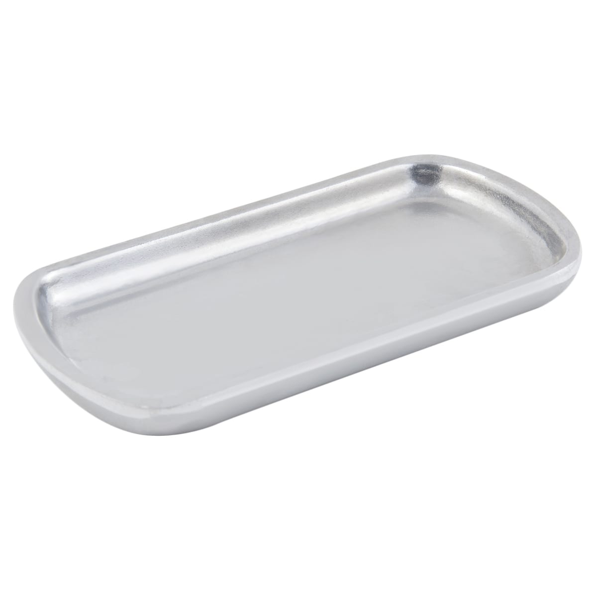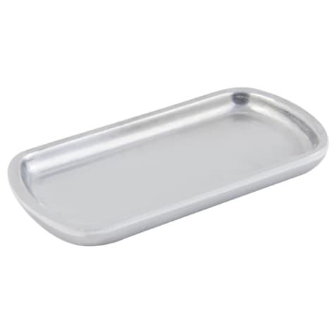 This small 4" x 8" sizzle platter is made of cast aluminum with a pewter glo finish that is good for hot or cold food and is oven‐safe.