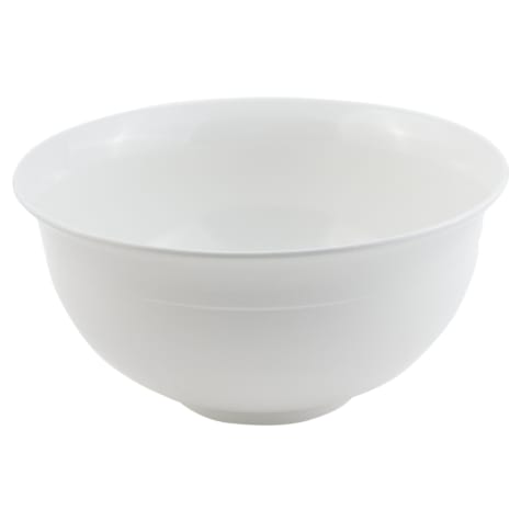 This 2.5 qt tulip bowl is made of cast aluminum with a white sandstone finish and has a flared lip design.