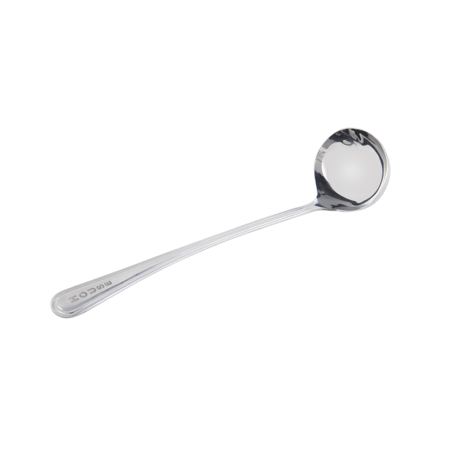 This 1 Oz. salad dressing ladle is made of stainless steel and has "House" imprinted on the handle.
