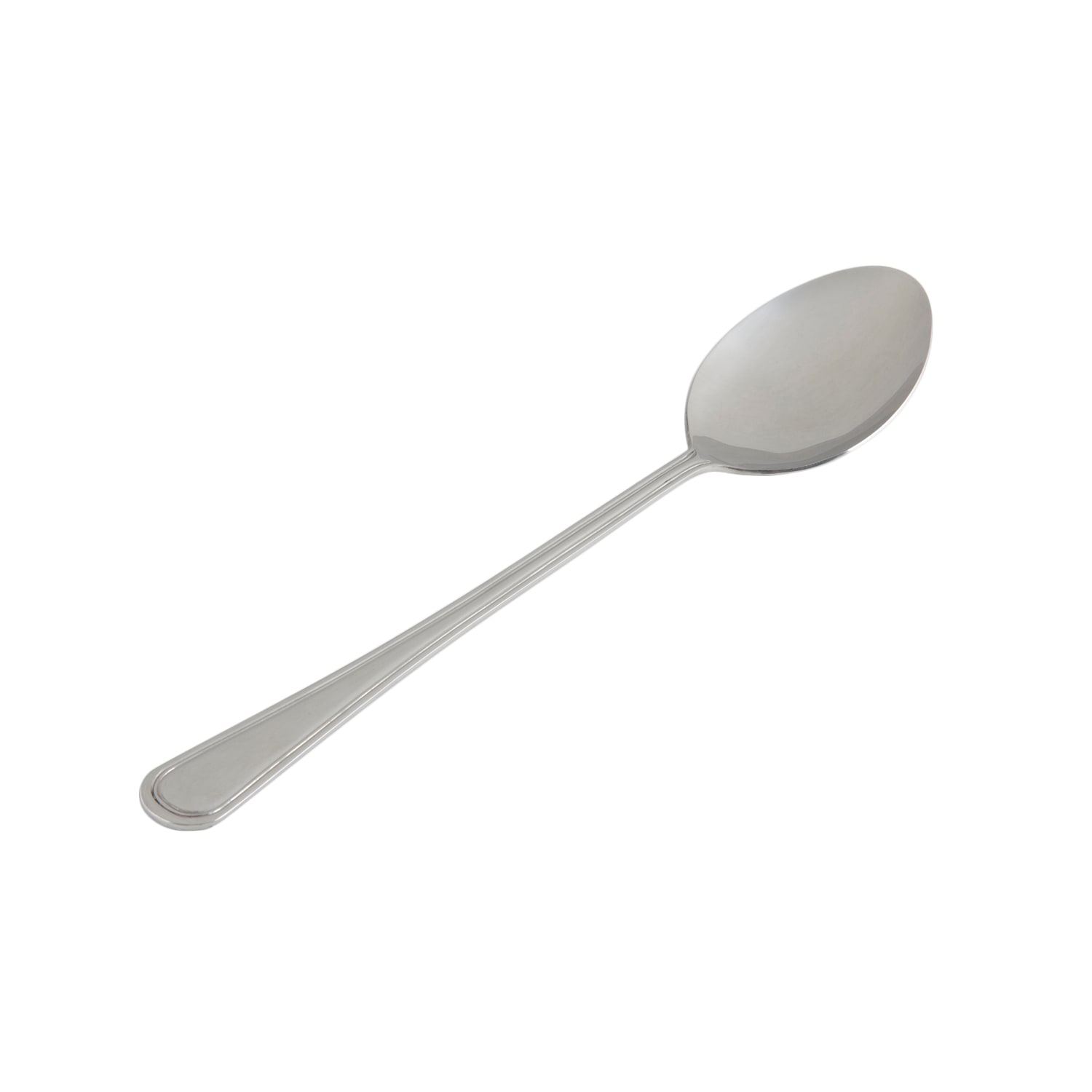This 12" banquet serving spoon is made of stainless steel with a round bowl design.