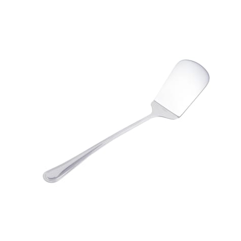 This 13" banquet spatula is made of stainless steel with a rounded end design.
