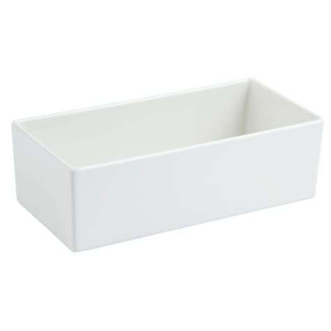 This 56 Oz. rectangular straight sided bowl features Bon Chef's sandstone finish that resists chipping and lifting. Made of cast aluminum with a white sandstone finish, it looks like china but is more durable.