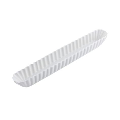 This long 18" condiment server is made of cast aluminum with a white sandstone finish that looks just like china, but has far better durability.