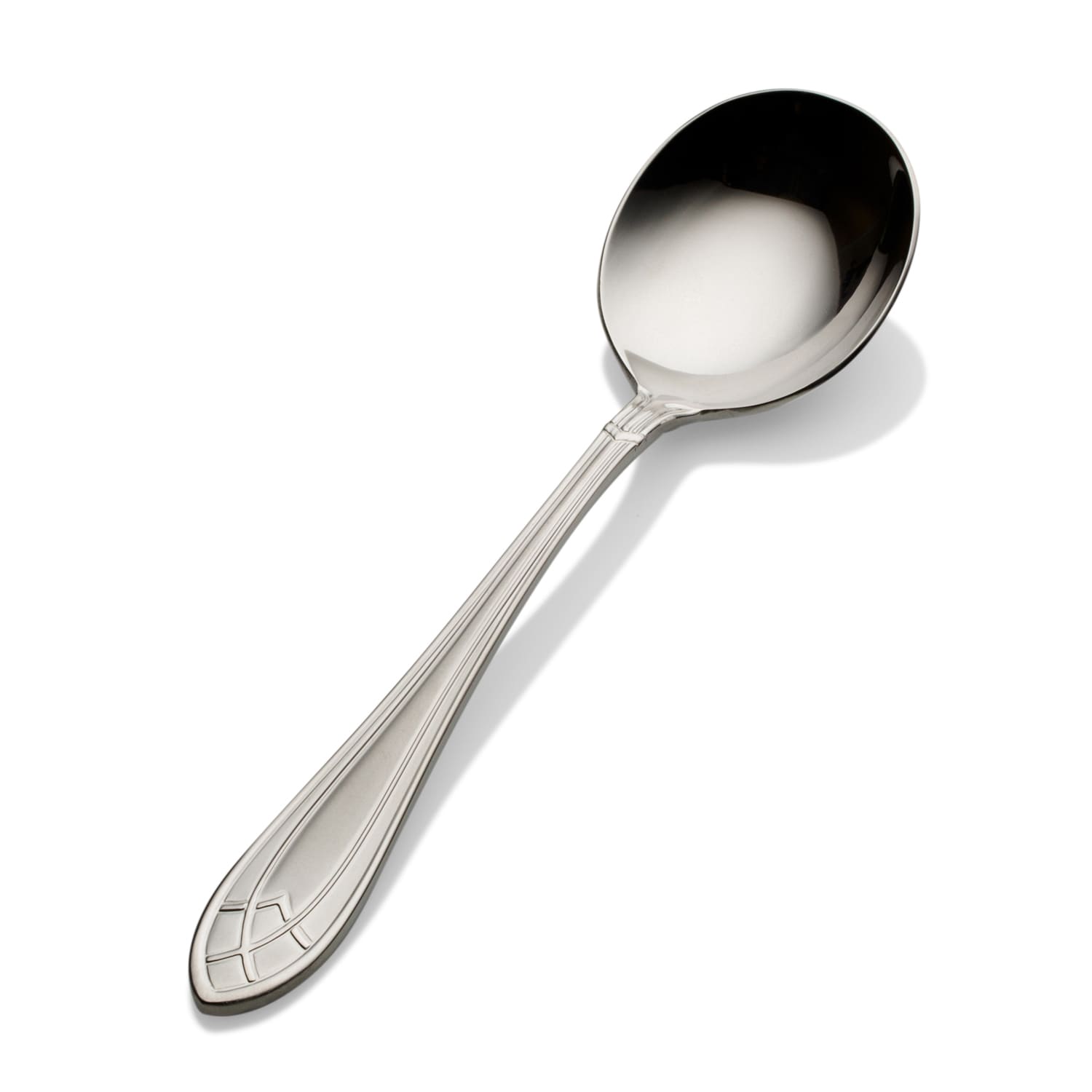 This bouillon spoon is made of high quality 18/ 8 stainless steel and features the intersecting curved ridges of the Viva line.