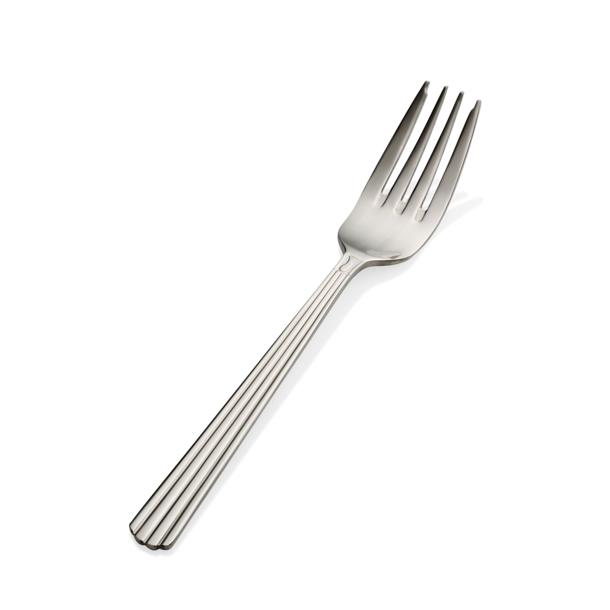 This salad and dessert fork is made of high quality 18/ 8 stainless steel and features the three handle‐length grooves of the Britany line.