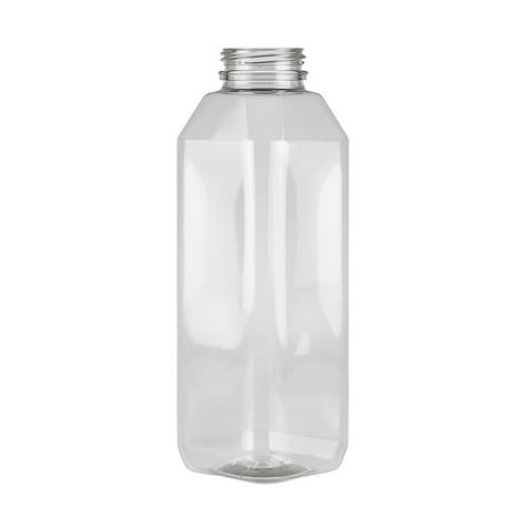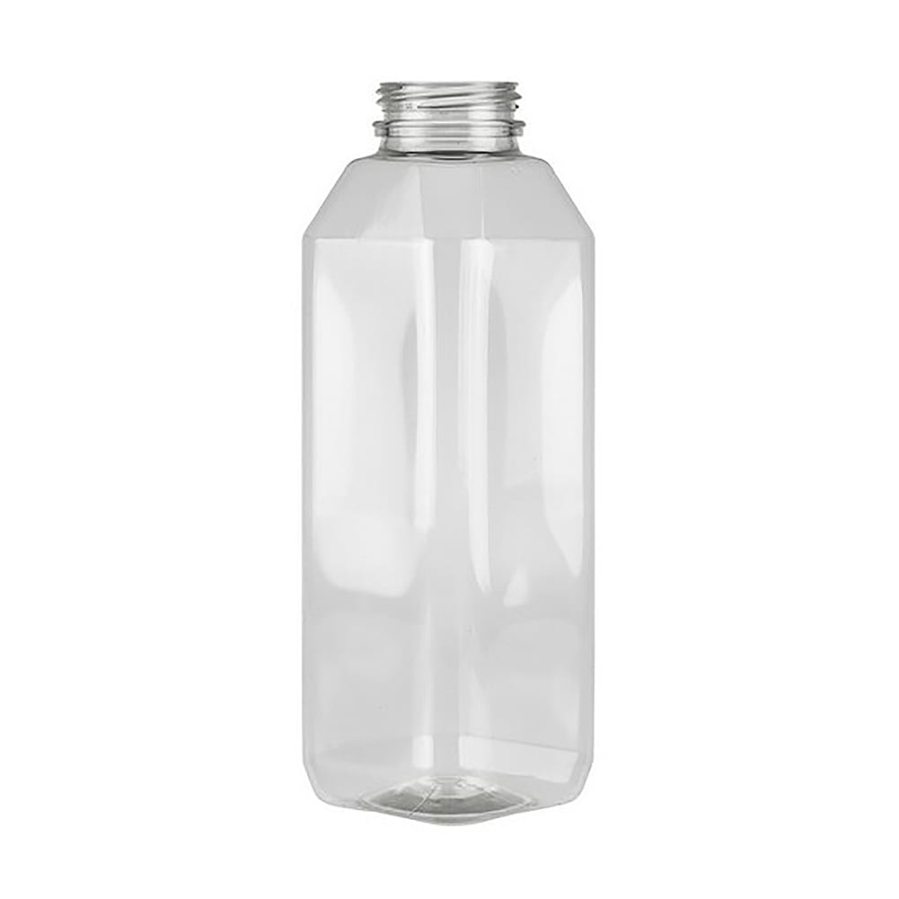 This plastic square beverage bottle has a 16 ounce capacity and is perfect for juice.