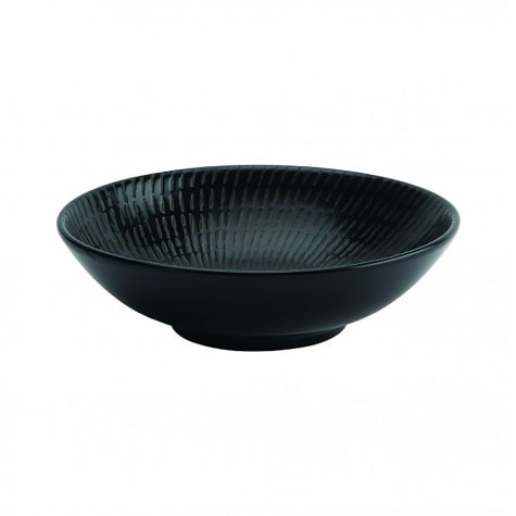 Motion and movement of the potters wheel create this spiraling textural surface. Each piece combines a tactile sense of carved relief, with the charm and pattern of batik. Center plating naturally focuses flavor with almost hypnotically spiraling waves of light.