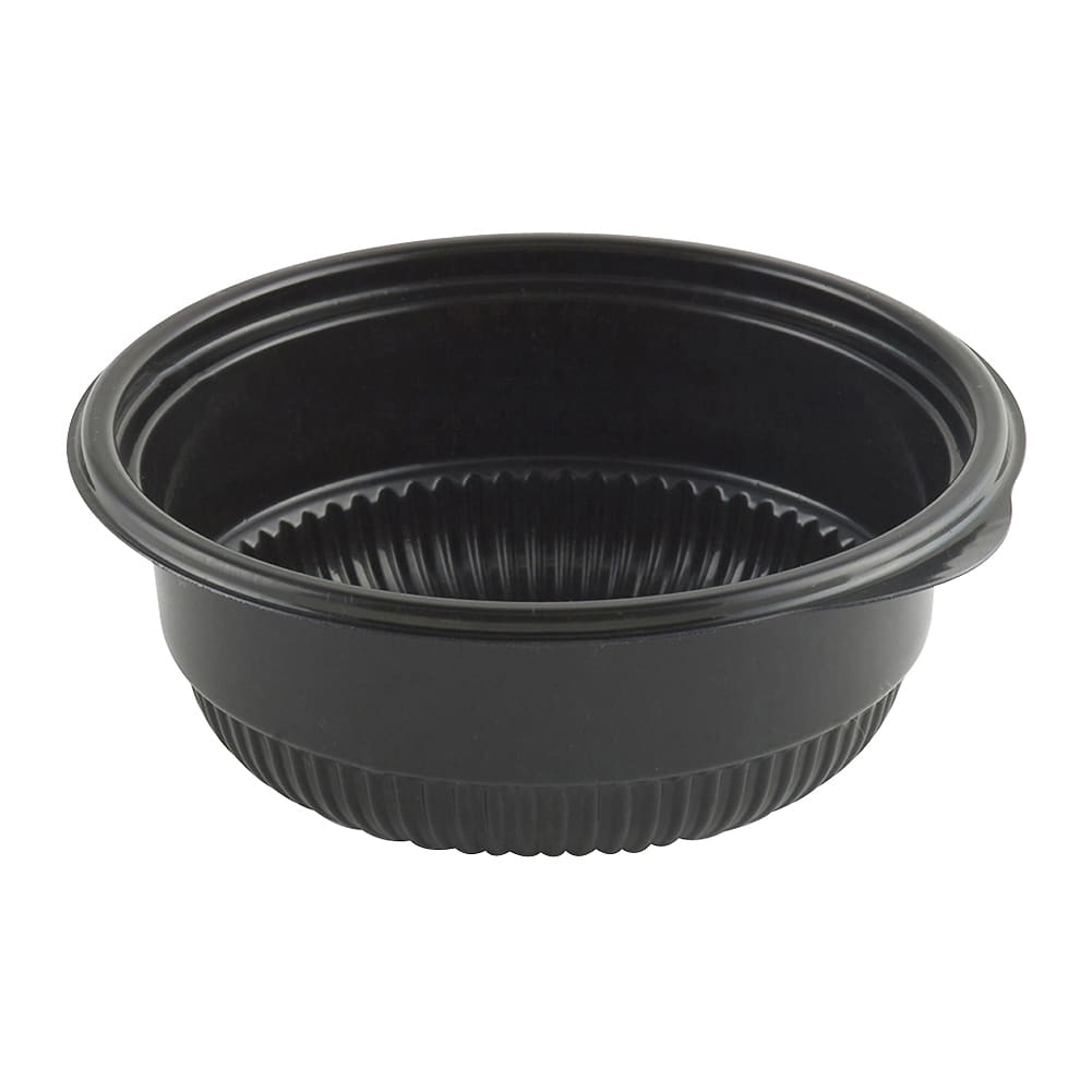 This 8 ounce round Incredi-Bowl® from Anchor Packaging is a black polypropylene bowl that can withstand temperatures of up to 230°F under heat lamps, warming units/tunnels, or microwaves. Great for hot or cold sides and sauces!