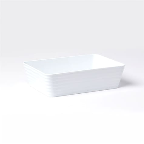 The American Metalcraft B11W is a 96-ounce rectangular serving bowl, featuring a clean white finish that complements various dining settings. Made from ABS plastic, this lightweight and stackable bowl is dishwasher-safe and BPA-free, ensuring durability and convenience. Its 11-inch by 7 7/8-inch size makes it perfect for serving large portions, while its modular design allows for easy storage and cleanup. This bowl is a versatile and elegant addition to any tabletop.