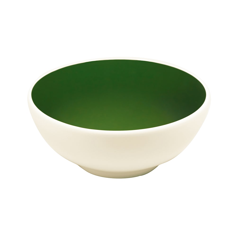 This Samba Forest 21.3 ounce noodle bowl features a white exterior and a green interior that makes a beautiful food presentation.