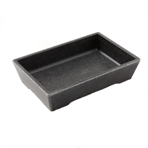 This reusable collection of bowls was curated with reinvention of buffet and group dining in mind. Made of dishwasher-safe melamine, this bowl features black speckles on the outside.