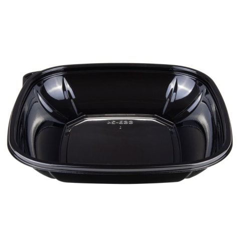These PET square bowls can store a variety of foods like fruit, fresh salads, and more. This 24 ounce bowl has a black color and square shape offers an attractive presentation of your food to your customers.