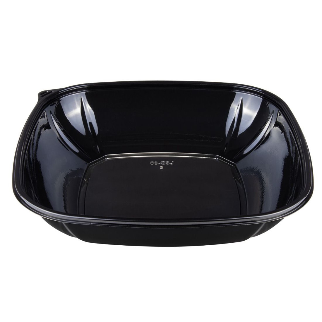 These PET square bowls can store a variety of foods like fruit, fresh salads, and more. This 80 ounce bowl has a black color and square shape offers an attractive presentation of your food to your customers.