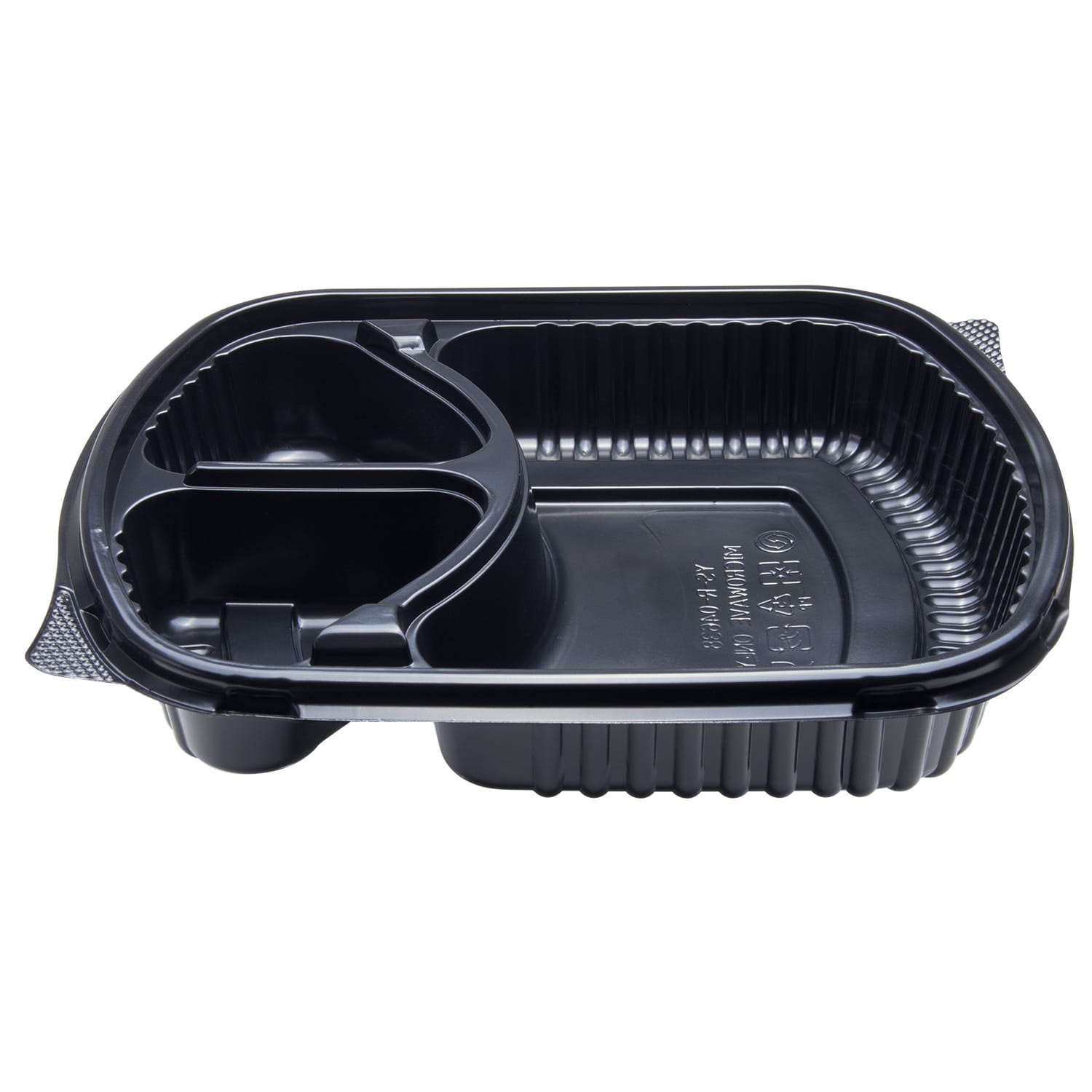 These Take Out boxes are sturdy and made from a durable polypropylene material that is microwave safe. They are ideal for an assortment of foods and has three compartments.