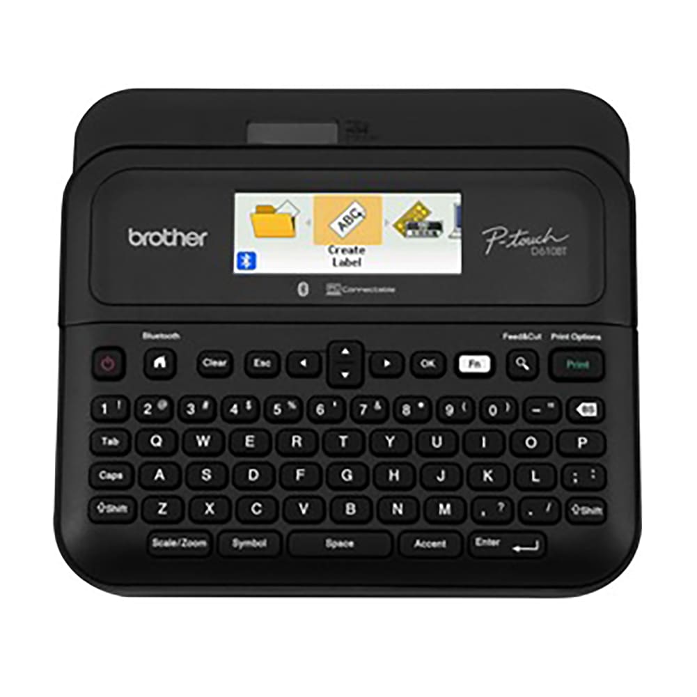 This Brother® Label Maker is PC-Connectable and is able to make high-resolution labels up to 24mm wide. It can print up to 7 lines of text and has one-touch formatting. This label maker is backlit for ease-of-use. It has an auto cutter and auto off.