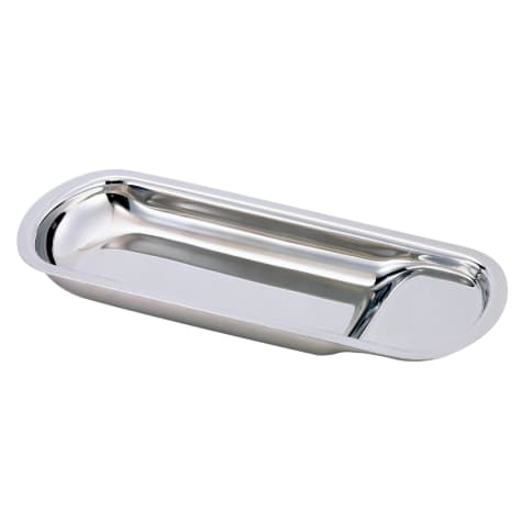 This 10.5" x 4.5" spoon rest from Browne Foodservice helps keep food particles off the serving table. It is made of durable stainless steel and will add an elegant look to any serving area.