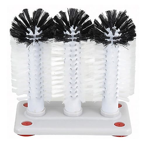 This manual glass washer from Winco® features 3 glass brushes with a plastic base and the 4 suction feet provide stability on slippery surfaces.