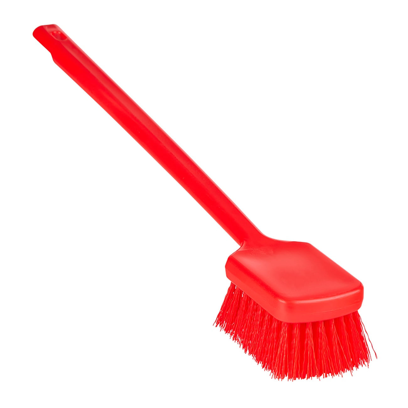 The long-handled scrubbing brush lets workers reach deep into bowls or vats to clean them faster and easier.