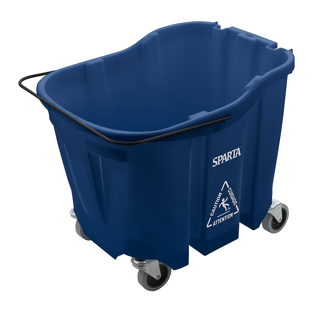 This 35 quart mop bucket from Carlisle® features sturdy construction made from corrosion resistant polypropylene and the non-marking, swiveling casters provide convenient and mess-free mobility over smooth floor surfaces.