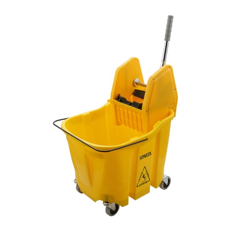 This Sparta® OmniFit™ mop bucket combo features a down press wringer and is rated for thousands of cycles. It features sturdy construction made from corrosion resistant polyethylene and the ergonomic handle is easy to move and press.