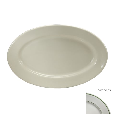 This rolled edge oval platter from the 1880 Hospitality Green line is so versatile that you will enjoy finding new ways to use it. The alluring look of the creamy white porcelain allows you the ability to mix and match with other dinnerware.