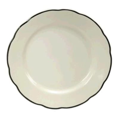 Give your guests a taste of your culinary creation on this plate from the Manhattan Black line. This creamy white porcelain with its single black band for trim is at home with just about any dining presentation.