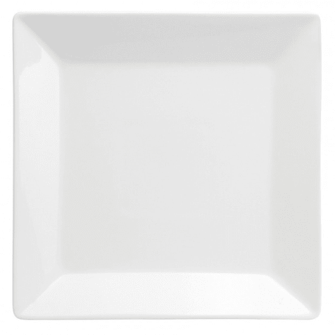 This square white plate from 1880 Hospitality is 9.5" on each side and will blend with any table setting! It features a bright, white porcelain body and a hard, scratch-resistant glaze. The square shape will add a modern look to any dining area and is perfect for use in restaurants, diners or hotels.
