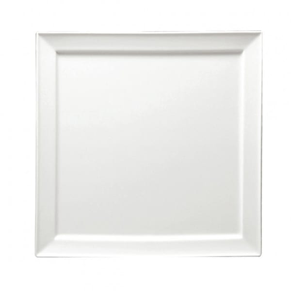 This square platter from the Bright White Ware line is so versatile that you will enjoy finding new ways to use it. The durable bright white porcelain allows you to get creative with your dining presentation.