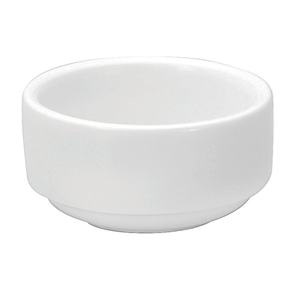Bring this 1.5 ounce Mini Ramekin from the Bright White Ware line to the table for a great finishing touch. Your guests will admire the crisp bright white porcelain.
