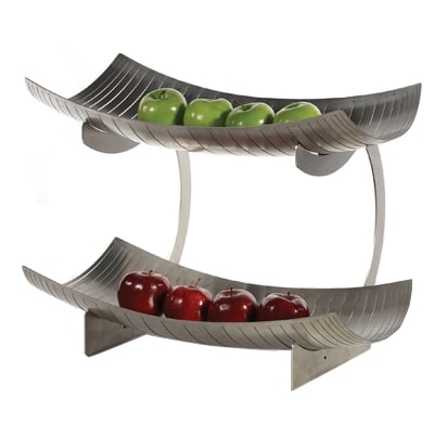 Unique stand to hold different fruits either in home or at restaurants and hotels. The armadillo style holder will keep the fruit from rolling off.