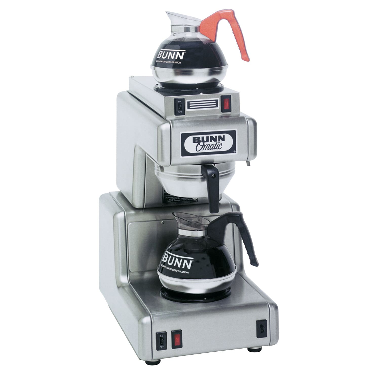 This BUNN® OT 15 Automatic Coffee Maker can brew up to 3.8 gallons of fresh coffee an hour. It features durable, all stainless steel construction and a SplashGard® funnel to protect hands from hot water.