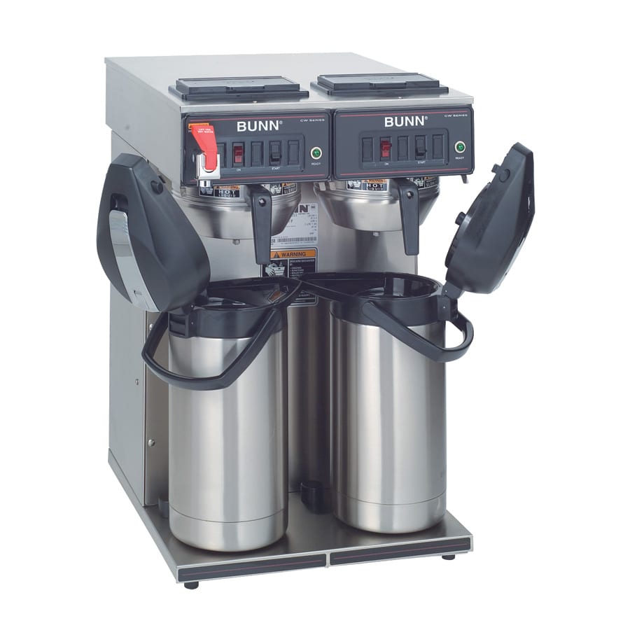 Brew up to 15 gallons of coffee per hour with the BUNN® Automatic Coffee Brewer. This machine features a twin brew head system with a SplashGard® funnel which protects hands from hot water. It also has a front digital timer.