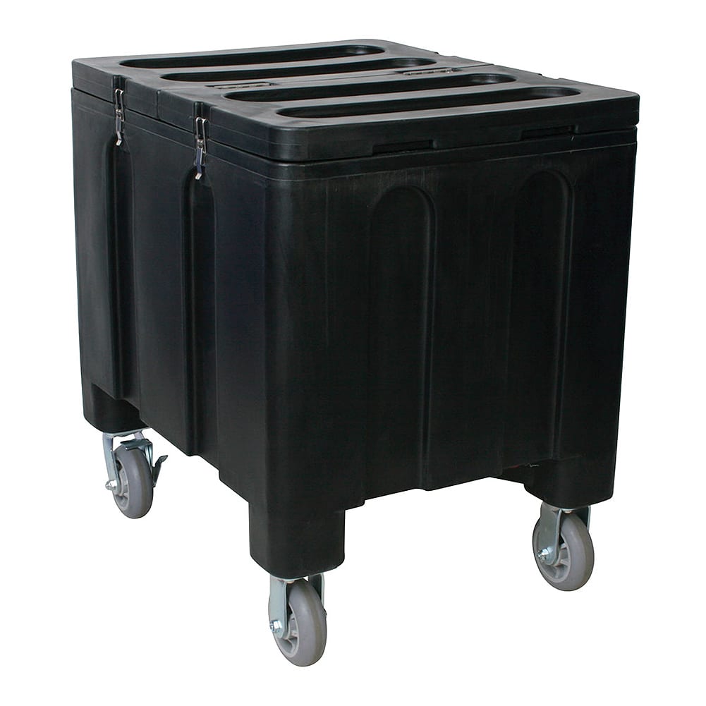 If you need to transport a lot of ice for supplementary ice-down merchandising units - the Ice Caddy I from Iowa Rotocast is perfect for the task! This foam insulated utility cart can move up to 200 pounds of ice effortlessly. Two durable latching lids fully enclose the ice during transport and thanks to its robust five inch casters, the Ice Caddy can overcome most doorway obstacles or inclines even while fully loaded. Want to convert it to an ice bin merchandiser or standing cooler? Simply add a set of large fully customizable graphics to the exterior. The Ice Caddy's exterior surface area offers the perfect signage to show off your offer. The Ice Caddy features molded handles to give you extra grip, and the two latching lids can be easily removed to make loading ice or dispensing ice easier. The hinged lid also offers independent access on either side, making for a quick grab of product without lid removal.