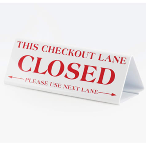 Let customers know that a checkout lane is closed by using this sign from Cal‐Mil.