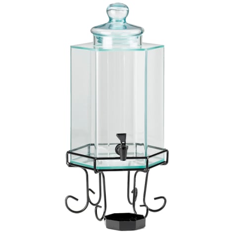 This Cal‐Mil Octagon Dispenser includes Ice Chamber, Base, Lid Drip Tray and Spigot. The ice chamber to keep cold beverages cold without diluting. The wire stand provides an elegant look.