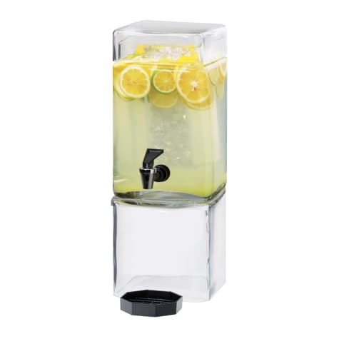 This Cal‐Mil 1.5 gallon Beverage Dispenser is Square Glass and measures 9.25" x 7.25" x 18.5". This elegant and stylish beverage dispenser is made using crystal clear glass It's ideal for serving juices, water, iced tea, and many other beverages. This dispenser features a removable ice chamber to keep your beverages cold without diluting them.