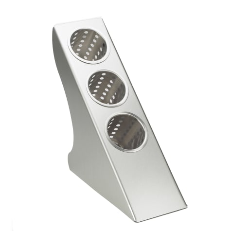 This Cal Mil 1232 3 tier flatware holder is perfect for storing forks, knives, spoons, and other necessary flatware. Its simple design features a slanted front for easy access. Cylinders sold separately.
