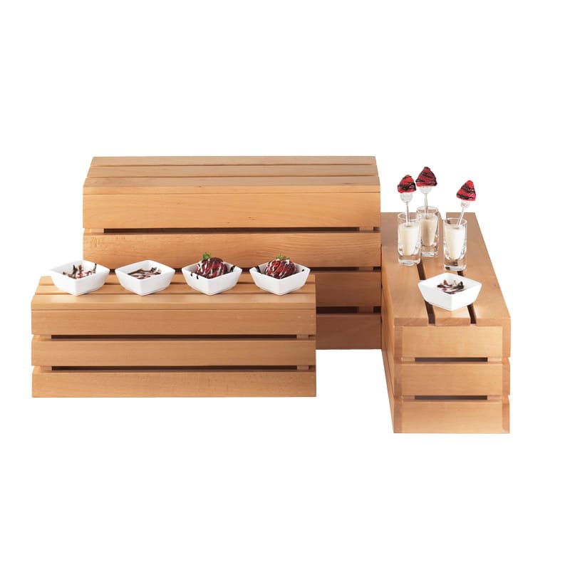 This bamboo crate riser from Cal‐Mil is perfect for displaying your culinary creations. This versatile crate can also be turned around and used as a bin to store products. This riser is 20" x 7" and is 11" high. Perfect for restaurants or catered events.
