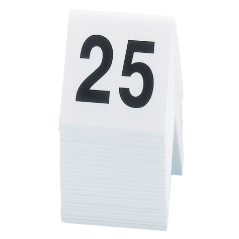 This set of Cal‐Mil Tent Tags are White with Black Numbers, and include numbers 26‐50.