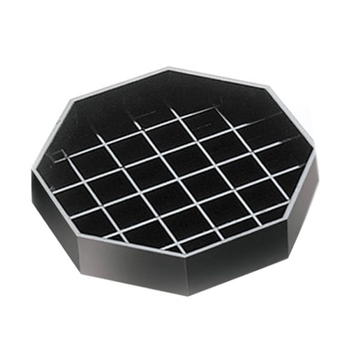 This Cal‐Mil octagonal spigot drip tray is made of black plastic and measures 4" x 4".