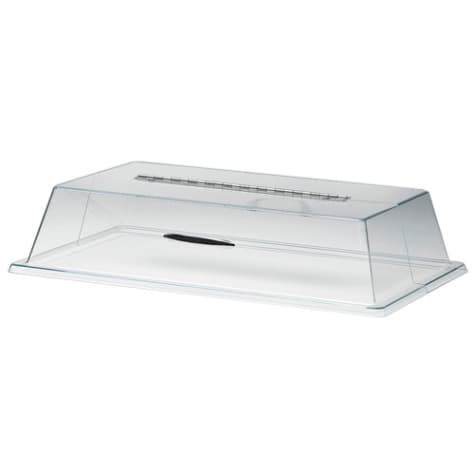 Cal‐Mil manufactures 1,000 plus products to dispense, display, protect, merchandise, serve, dress up and organize foods and beverages. This Cal‐Mil Long Bakery Hinge Cover is Clear.