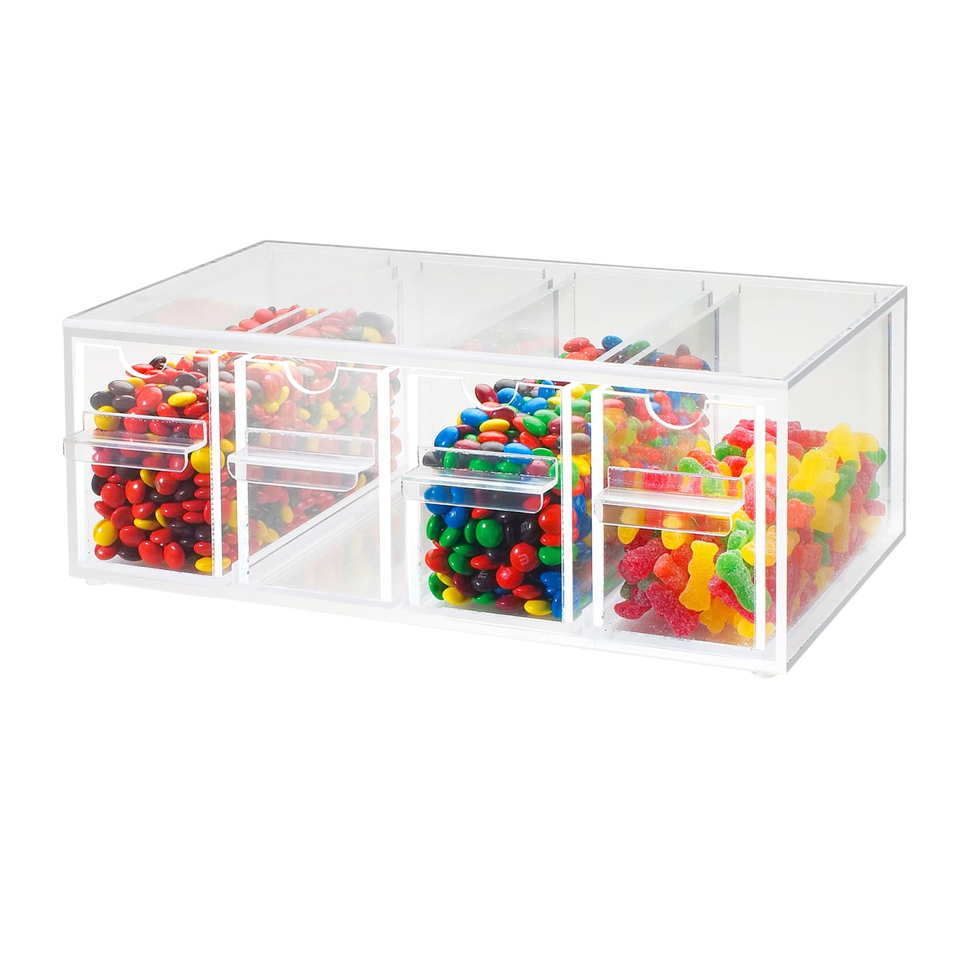 This Cal‐Mil 4 Drawer Stackable Topping Dispenser is perfect for ice cream toppings or candies and stores them in a neat and sanitary manner.