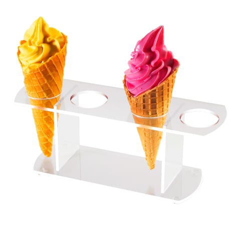 This Cal‐Mil waffle cone holder is 12" x 4.5" x 4" and is made of clear acrylic.