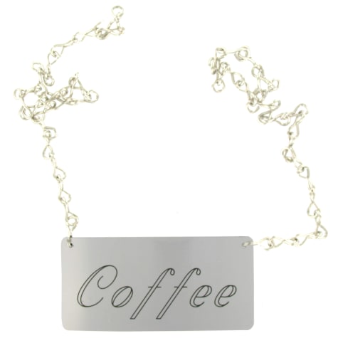 This Cal‐Mil "Coffee" sign and chain is designed to be used with coffee urns.