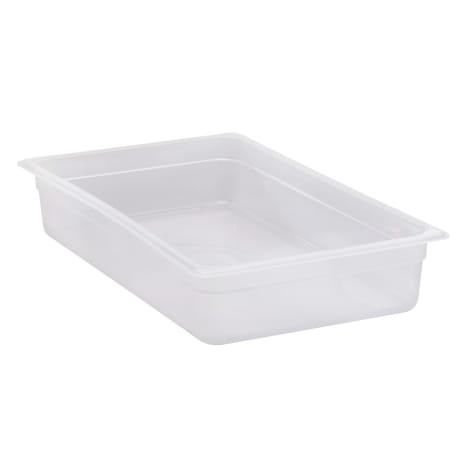 For a more economical choice for prep tables, food bars and vending carts, use this translucent, 4" high full size food pan made of durable polypropylene. The translucent material allows for content visibility, and this pan withstands temperatures from ‐40°F to 160°F, making it good for both warm and cold food. The smooth, non‐stick interior makes cleaning easy, and also helps the pan stack neatly without sticking.