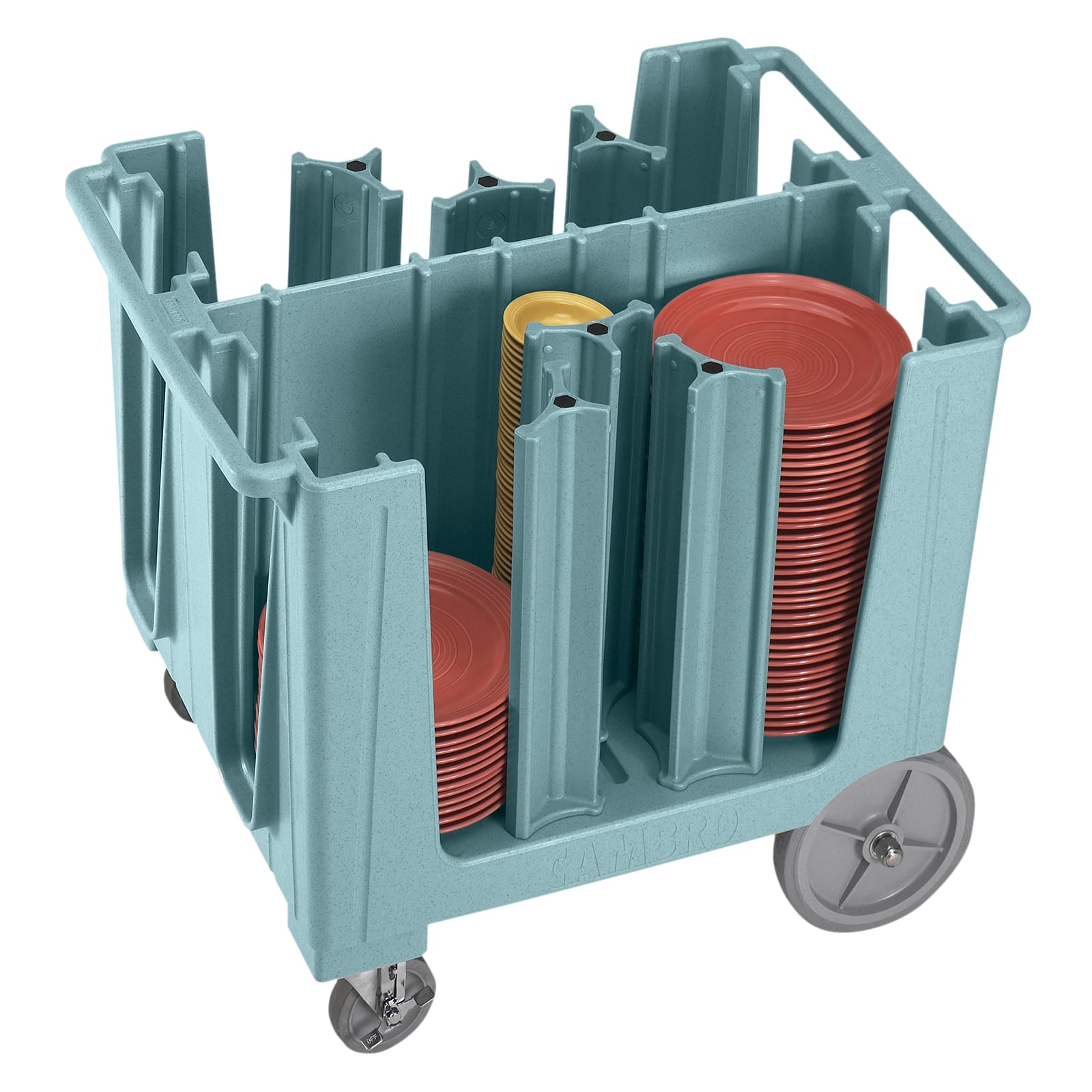 Store, protect and transport all different sides of dishware at once using this slate blue adjustable dish caddy that can hold up to 45 footed plates or 60 non‐footed plates per column. Its six towers can be easily repositioned as needed.