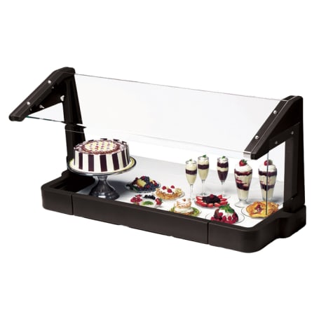 This Cambro® black 48" tabletop sneeze guard makes a great addition to any self‐serve layout, be it in food pans or simply a selection of plates on a table. Its durable polyethylene construction is lightweight and easy to clean.