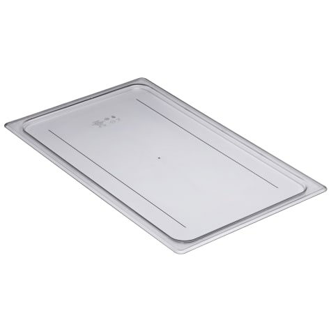 Use this clear full size flat food pan cover made of clear, virtually unbreakable Camwear polycarbonate to keep the contents of your pans secure and prevent cross‐contamination. This lid withstands temperatures from ‐40°F to 210°F and will not crack, bend or dent.