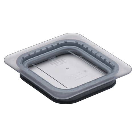 Use this 1/6 size food pan GripLid made of clear, virtually unbreakable Camwear polycarbonate when you want to keep the contents of your pans as secure as possible to prevent cross‐contamination. Its built‐in polyurethane gasket allows it to seal tightly for spill‐proof transportation and delivery. This lid withstands temperatures from ‐40°F to 210°F and will not crack, bend or dent.